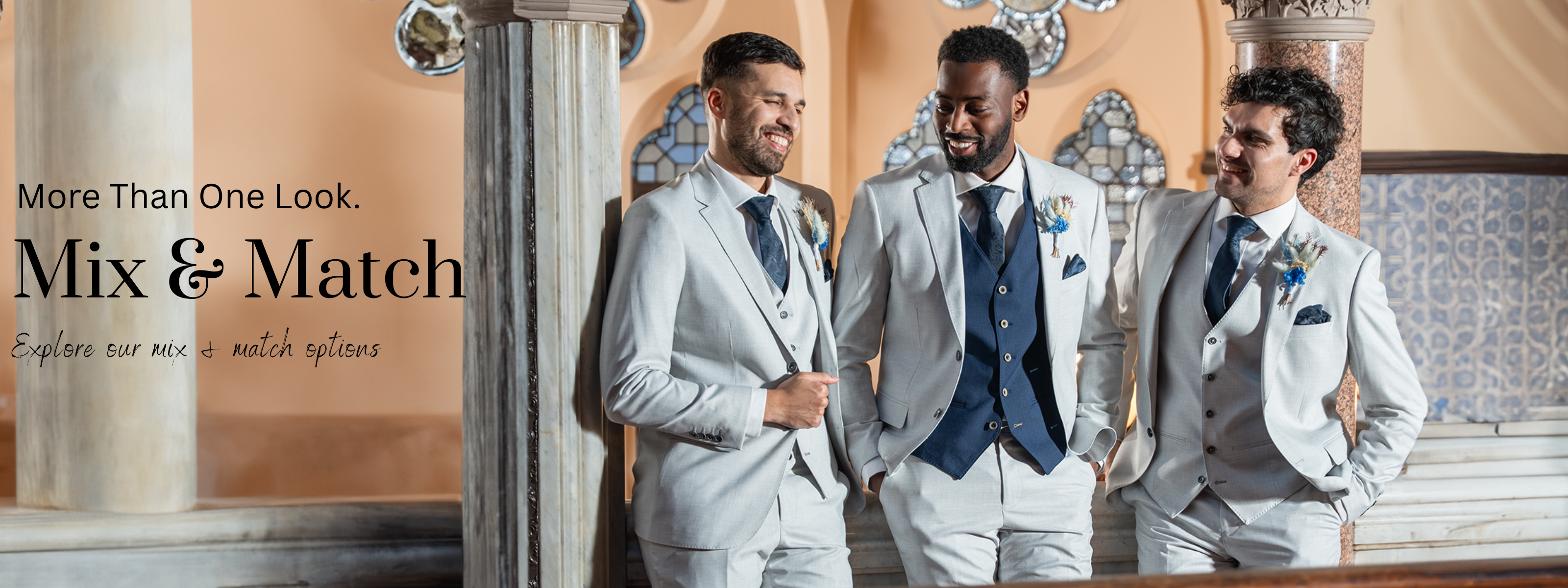 - Get fitted: Come down on the day, get sized up, choose your suit, and take it home with you!